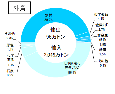 姫路港は、瀬戸内海の東部、播磨灘のほぼ中央に位置し姫路市、御津市の地先水面、東西約18kmを港湾区域とする国際拠点港湾です。背後には金属、化学工業の企業が集積する播磨工業地帯の中心を支える港として、地域の物流拠点、エネルギー基地として、地域経済社会の発展に貢献しています。